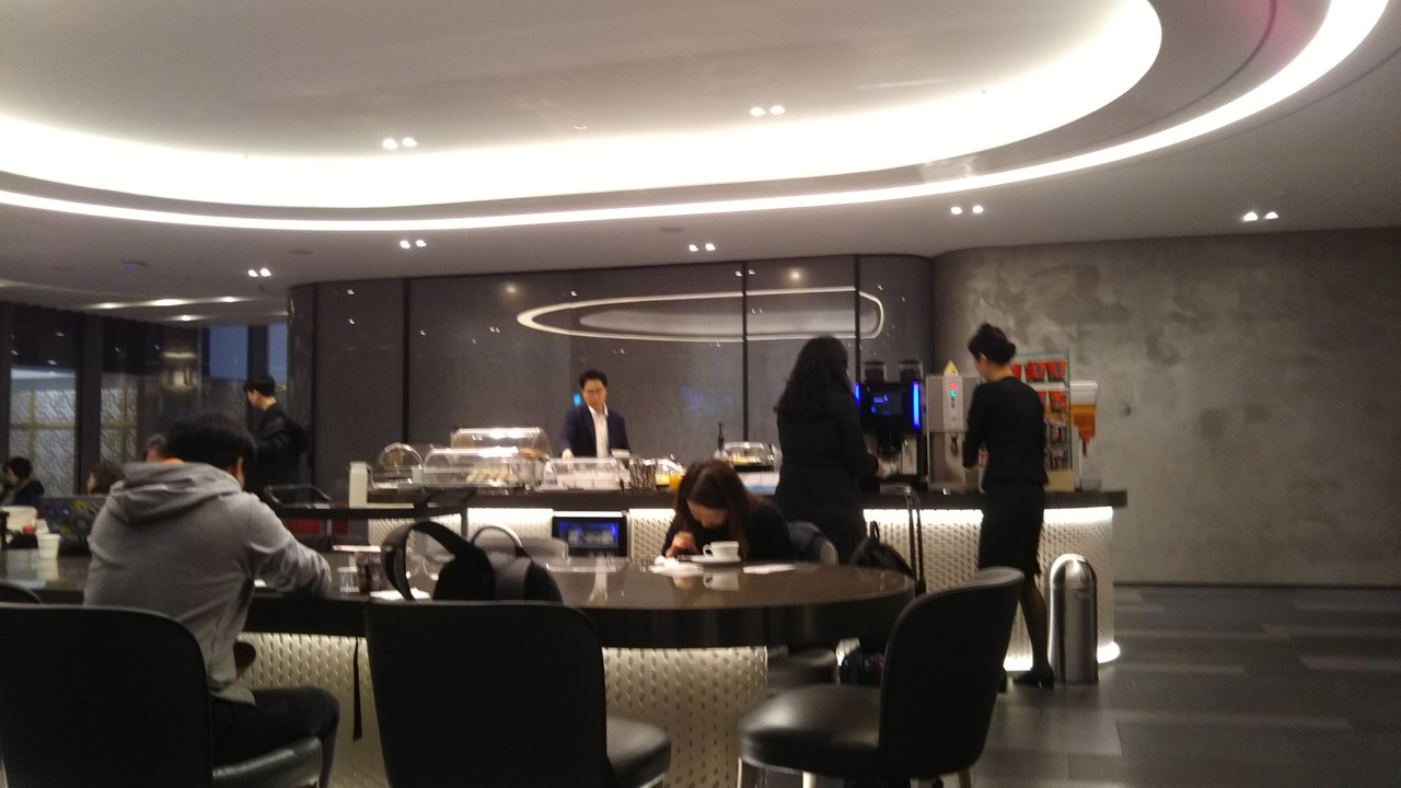出国審査を通過したら、左手側通路を進んだところにあります。オススメは、レストランのアラカルトメニューにある担々麺。マイルドなゴマスープが麺に絡み絶品。アラカルトは他、ステーキなどもありました。ビュッフェメニューも豊富。もちろん無料です。