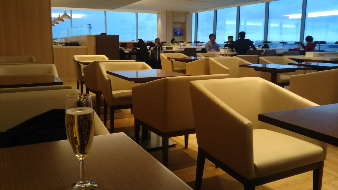 ラウンジの回収に伴い、ビジネスラウンジの1フロアがファースト用の臨時ラウンジとして運用されていました。元々がビジネスラウンジなので、座席がやたら多く、豪華さには欠けました。また、たまたまかもしれませんが、毎回楽しみにしているチーズがなかったのが残念でした。平日午後利用だったのもあり、空いていました。