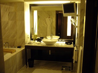 - バスタブは深く、日本人にも好都合。シャワーブースは独立してます