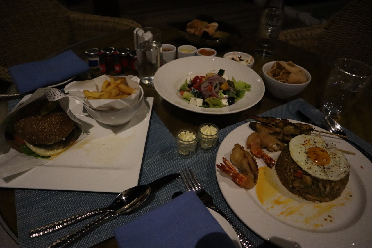 ジュメイラ内に4つあるレストランの一つ。朝からオープンしているメインダイニングで、ホテル内では最もカジュアルでリーズナブルです。夜もビュッフェがあり、「インディアンナイト」など、毎日メニューに趣向が凝らされています。「ジャパニーズナイト」もありました。アラカルトでは前菜が30ドル、主菜が40ドル前後が多かったです。ボリュームは多いので、私たちは2人で前菜1品、メイン2品を頼みシェアしていました。