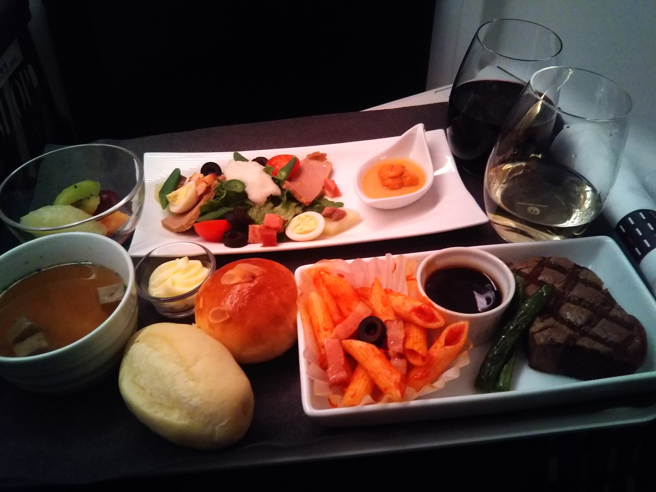 キャセイ航空利用の指定ラウンジ。広くて席数も多いけど、各航空会社の利用客がいて、混雑していました。ただ、席が確保できないというほどではありません。空港内でできることが限られているので、空き時間をラウンジで過ごせたのは助かりました。食事はビュッフェスタイル。種類は限られていますが、パスタやスープが美味しかったです。飲み物はアルコールはありません。ラウンジ内のトイレはきれいでした。