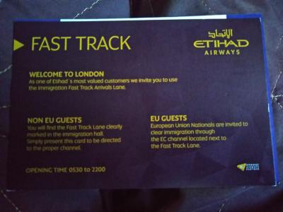 エティハド航空だと、ビジネスでもファストトラックパスがもらえた