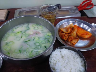 24時間営業の店。平日の夜21頃行きました。流石に並ぶ時間帯ではありませんでしたが、盛況でした。私含め、1人客も多かったです。濃厚ですが、味付けは薄いスープに、食べ放題のキムチを入れて食べるのが病みつきになりました。ソウル出張では、必ず立ち寄ってます。