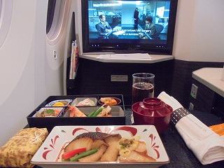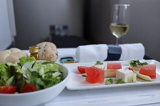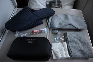 ビジネスクラスを利用しました。隣席と向かい合わせの座席配置は、他人だと気恥ずかしいのですが、身内だと会話がしやすくポジティブでした。座席はフルフラットになるので快適。機内食もきれいで美味しかったです。接客も問題なく丁寧でした。なお、スリッパはリクエストするともらえます。