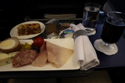 欧州域内線のビジネスクラスを利用。フライト時間は2時間。他路線、他社線と同じく、エコノミークラスと同じ座席で、3列席の真ん中を空けて少しだけスペースがあるかたち。ラウンジが使える、前方席、食事が出るなどの一部の特典がビジネスクラスのメリットで、エコノミークラスとの比較で、長距離線ほどの差はないと思います。