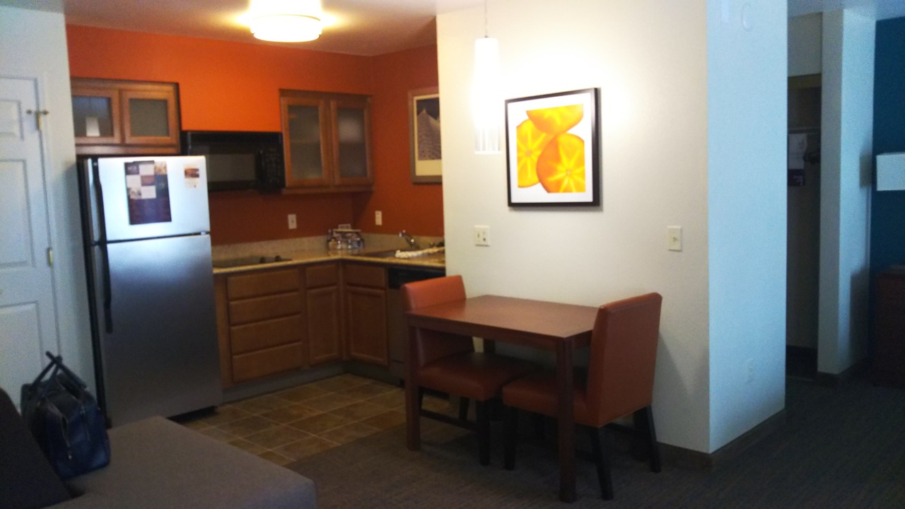 ストックトンは治安が悪いですが、このホテルは郊外にあり夜も外を歩けます。キッチン、大型冷蔵庫が備わった長期滞在向きのホテルです。ダイニングテーブルと大型のソファーがあり、部屋は広いです。朝食付きですが、昼と夜はホテル内にレストランはありません。
