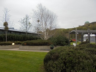 市街中心部の目抜き通りに面したホテル。マリオット系列です。客室は3階にあるのですが、不思議なのが、斜面に建っているため、目抜き通りと反対側の部屋からは、広大な裏側に直接アクセスできる点(1階のような感じ)。表通りの喧騒とは大違いで、自室前のテラスにあるソファーからは静かに豊かな自然が楽しめました。朝食も、卵料理はアラカルトになっていて、副菜がビュッフェスタイルで美味しかったです。