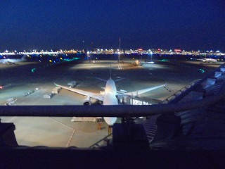 初めて夜に立ち寄ってみました。チェックインカウンター奥のエスカレーターで登っていくと展望デッキに出られます。7月の平日夜、天気は晴天でした。利用客は疎らで、空いていました。ライトアップされた空港がきれいでした。