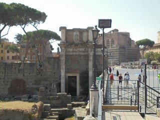フォロロマーノに沿ったフォーリ・インペリアーリ通り沿いにあります。トラヤヌスのマーケットの南側となりです。紀元前2世紀の完成で、当時は大理石の像で飾られていて、今でもアウグストゥス帝の像の台座が残っているとのことでした。