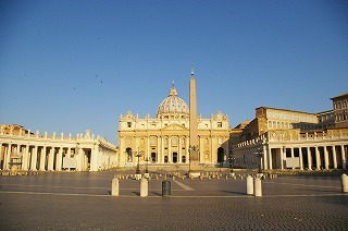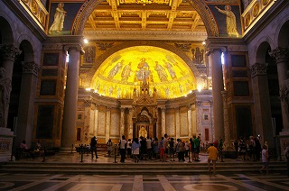 市街から少し離れているので、空港からホテルに向かう途中、アッピア街道と合わせて観光しました。ローマ4大聖堂の一つで、今年は「特別聖年」にあたり、16年ぶりに聖なる扉が開いています。4大聖堂の中でも、回廊と中庭の美しさが特に印象的でした。