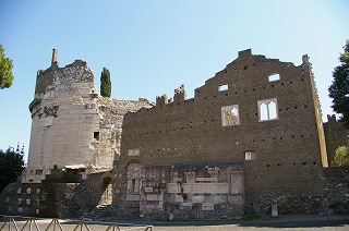 市街から南に外れたアッピア街道沿いにある史跡。高さ10mほどの白色の円筒が目立ち、印象的でした。中世には要塞としても使われたようです。有料(6ユーロ、共通券7ユーロ)で内部の見学も可能です。アッピア街道で、最も保存状況が良い史跡とのことでした。