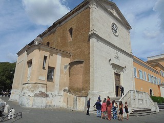川を渡ったトラステヴェレ地区にある小さな教会です。サンタ・マリア・トラステヴェレ教会からは徒歩5~10分でした。ジャニコロの丘手前、パオラの泉近くにあります。中庭にあるブラマンテ作の「小聖堂」が有名とのことです。