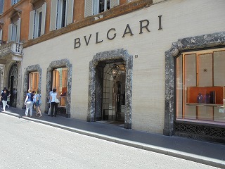 言わずと知れた高級宝飾店。スペイン広場から真っ直ぐ伸びるコンドッティ通り沿いにあります。入り口にはドアマンがいて、ドアの開閉をしてくれます。内部も高級感溢れる雰囲気でしたが、さすが観光地だけあって、客の見た目はTシャツ短パンの人もいて、拍子抜けする感じでした。ある意味、敷居を下げてくれているのは助かりました。