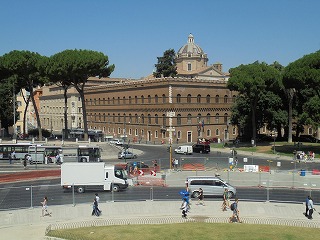 エマヌエーレ2世記念堂の前に広がるヴェネツィア広場の西側に面して建つレンガ色の宮殿。15世紀に着工されたようです。内部は有料(5ユーロ)の博物館になっています。宮殿のバルコニーからはムッソリーニが演説を行うなど、歴史の舞台にもなってきたようです。