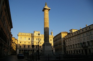 トレヴィの泉から徒歩3分くらいの場所、ガッレリアの道路反対側にあります。ローマ皇帝マルクス・アウレリウスの戦跡が彫られた記念柱で、ヴェネツィア広場横にあるトラヤヌス帝の記念柱を模して作られたとのことです。記念柱は大きく、先端までカメラに収めるには相当離れた距離からの撮影が必要でした。