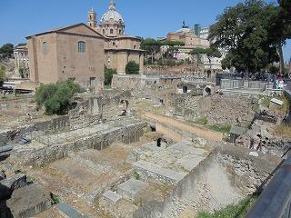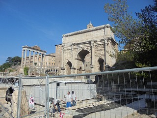 フォロ・ロマーノ北西側の入り口の近くに建つ凱旋門。南東側のティトゥスの凱旋門と比べると、やや小ぶりで場所も目立たないが、3つのアーチが特徴的。パネルには、セルヴェス帝が2度行ったパルティア戦役が描かれているようですが、訪問時(7月)は、凱旋門周辺が補修中で近づくことができませんでした。