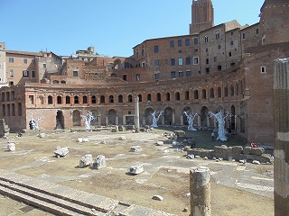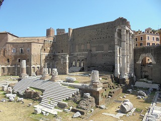 フォーリ・インペリアーリ通り沿いにある遺跡。北側にはトラヤヌスの記念柱が建ち、南側にはトラヤヌスのマーケットが隣接しています。内部には入れませんが、通りからでも十分に見学できました。今は列柱が残っていました。
