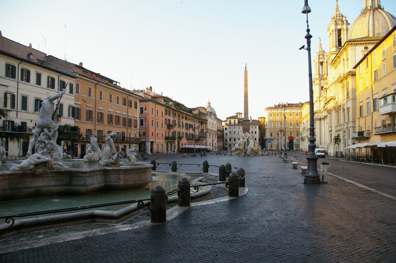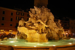 ベルニーニのライバル、ボッロミーニ作の教会。ナヴォーナ広場沿い、ベルニーニの大作「四大河の噴水」の目の前に建っています。エピソードでは、ラプラタの像が腕をかざして教会が倒れてくるのを防いでいるとありますが、実は四大河の噴水の方が先に出来ているので事実無根とのこと。内部は高いクーポラが印象的でした。