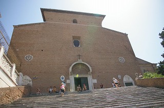 エマヌエーレ2世記念堂の裏手にある教会。高台にあり、正面から軽く100段はある階段を登って行きました。あとで気が付いたのですが、横手のカンピドーリオ広場とも繋がっていました。そちらから行った方が、遥かに楽そうでした。