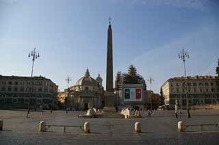 内部よりも外観が有名かもしれない教会。ポポロ広場から出る、コルソ通りを挟んで左右にある双子の教会のひとつです。こちらが向かって右手側。対となる左手側は「サンタ・マリア・イン・モンテサント教会」です。7月の訪問時には、残念ながら外装工事中でした。