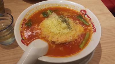 以前から気になっていたトマトラーメンを食べに。一番人気ということで、チーズトマト麺を頼みました。細麺とトマトスープの愛称はまずまず。ラーメンとパスタの中間という感じでした。店内は、4人用テーブル席が2つ、2人用が3つ、あとカウンター席もありました。