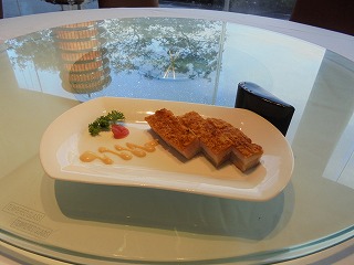 ショッピングモールのVIVOシティの中にはクリスタルジェイドが2店舗入っています。麺と点心の店と、今回利用した本格中華の店です。2人でしたが、空いていたので窓際の円卓を使わせてくれました。窓越しに対岸のセントーサ島を眺めながら食事を楽しめました。料理はどれも美味しかったです。