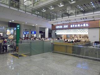 空港到着後、税関検査やミーティングスポットを抜けて、エアポートエクスプレスの駅に行くまでの間にある好立地のレストランです。シンガポール発祥の店で、香港でも麺とショウロンポウを中心にチェーン展開している人気店です。日曜20時頃で夕飯時ということもあり、ほぼ満席でしたが、待たずに入れました。外から丸見えなのが、やや気になりました。