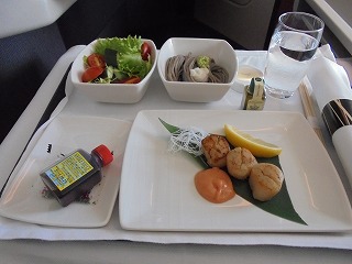 羽田から香港まで、ビジネスクラスで利用しました。近距離なのに、シートはフィッシュボーン式のフルフラットシートで、プライベート感があって快適でした。食事は1回で、メインは洋食、中華、和食の3拓でした。メニューの最後のページには日本語表記もありました。乗務員も親切で、総じて快適でした。