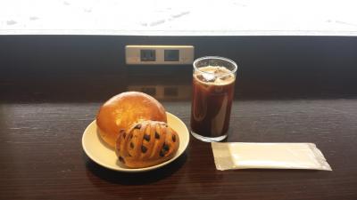専用の保安検査場を通過し、そのままダイレクトにラウンジに入れるアクセスは素晴らしいです。久々に国内線ラウンジを利用しましたが、食べ物のメニューにはあいかわらず寂しい。ですが、メゾンカイザーの肉まんパンが搭乗していました。食事代わりにはなりませんでしたが、クロワッサンよりはマシでした。パンは、これとチョコチップ入りのパンの2種類しかありませんでした。