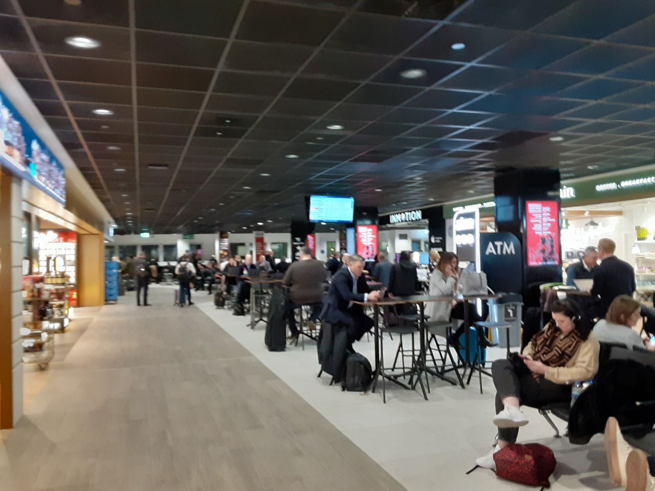 ロンドン市街東部からのアクセスは抜群に良いが、空港は小さく設備は最低限。狭いスペースに対して利用客が多いので、利便性重視との印象。それでもコロナ前と比べると、飲食店やショップが増設され、また手荷物検査を抜けた後(出国ゲートエリア)で、充電プラグ付きの椅子が多数設置されていて、快適さが改善していた。