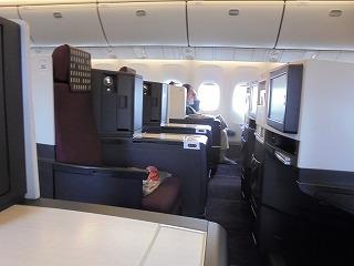 羽田発中国広州行きのJAL便、ビジネスクラスを利用しました。座席は1-2-1の横4列の配置でしたが、混みそうな日曜日の便なのに窓側以外は空席で、空いていました。おかげで、サービスが行き届いて快適でした。フライト時間が5時間ほどなので、シートはフルフラットは不要でしたが、プライベート感覚があって良かったです。