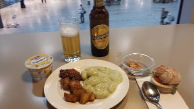 ロンドンまでBA便のフライトで利用したビジネスクラスラウンジ。席はカウンター席が多く、眼下には出発ゲートのセキュリティコントロールエリアが見渡せます。ビュッフェの食事は、ニョッキやビーフシチューもあり、域内線ラウンジにしては良かったです。