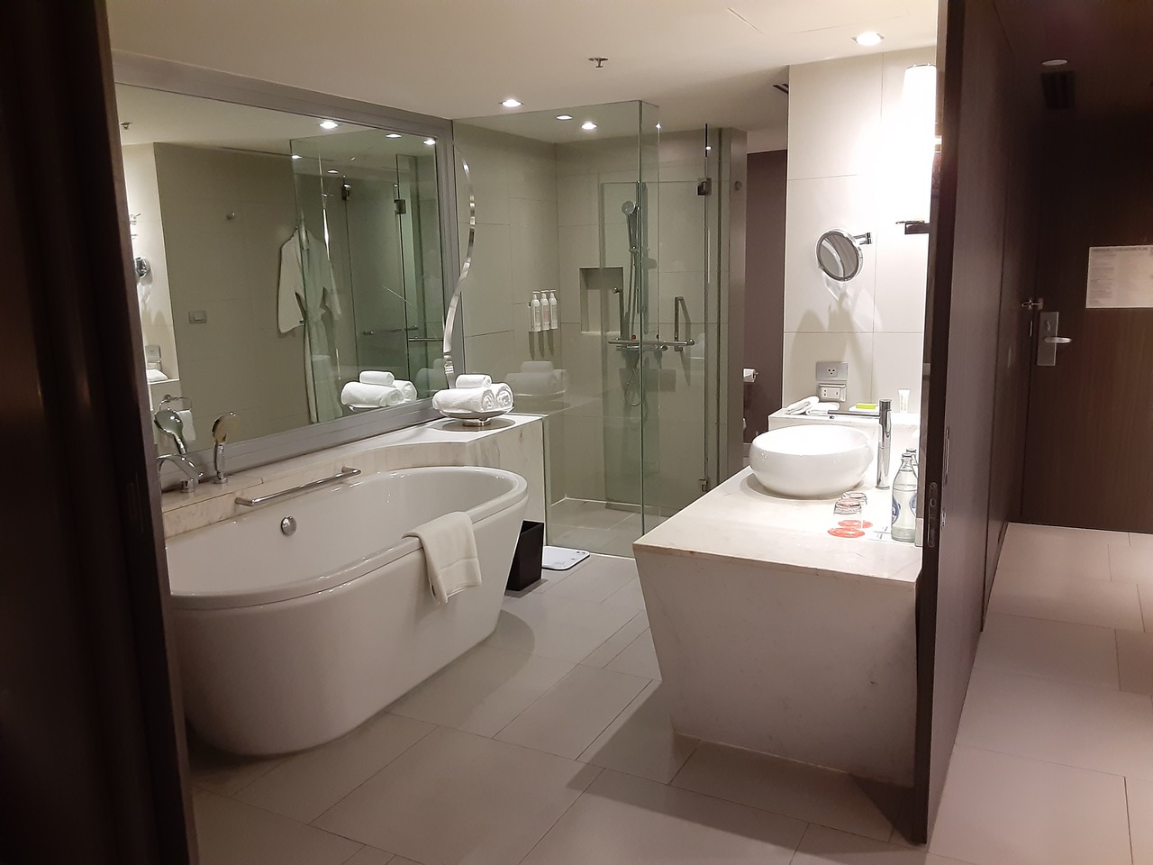 香港島アドミラルティのパシフィックプレイスにあるホテル。やや古さを感じたが、コンラッドと名乗るには十分なクオリティと感じた。部屋は広さ十分で、バスタブとは別に独立シャワーブースもあった。朝食ビュッフェはメニュー豊富で開放感あるスペースで良かった。