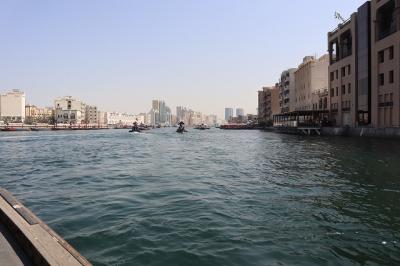 バスタキヤ地区から、対岸のゴールドスークに行きたく、アブラ(渡し船)でドバイクリークを渡りました。船は小さいため、水面から低く、両岸の街並みを見上げるように進んでいきました。アブラは、クリーク周遊の航路などもあるとのことでした。