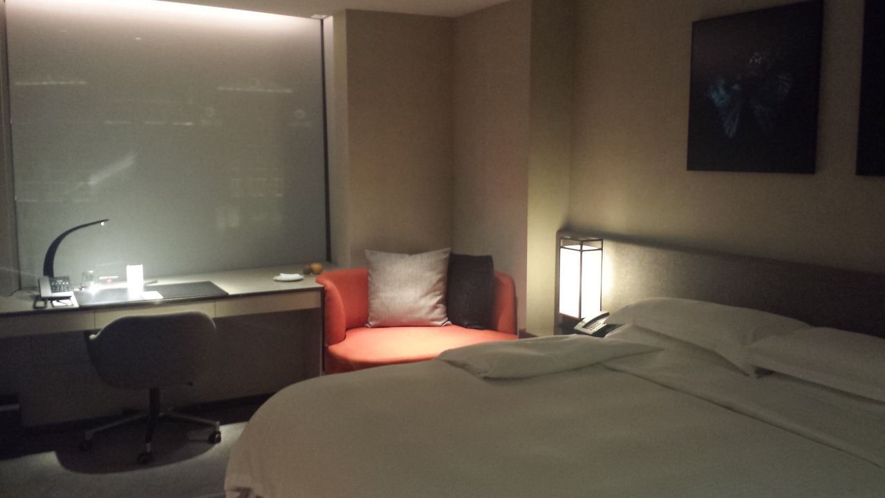 一泊朝食付きで2万円強/部屋でした。台北101の近くに2年前にオープンした新しいホテルです。隣は新光三越です。部屋は、シックな色合いで統一されていて、落ち着きます。電気やカーテンの操作が枕元で全て行えること、トイレがウォシュレットであること、シャワーブースが広いこと、が良かったです。