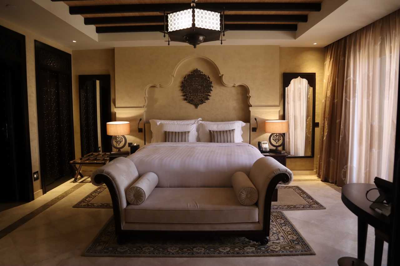 ロイヤルパビリオンヴィラという離れに泊まりました。ヴィラタイプの部屋で、テラスにはプライベートプールが付いている。水が貴重な砂漠でプールという背徳感は感じつつも、酷暑の中、プールに浸かりながら眼前に広がる雄大な砂漠世界の眺望を堪能しました。専属バトラーも親切で、対応もスピーディー。オプショナルツアーのキャメルライドは、想像以上に本格的で、砂漠に沈む夕日を堪能できました。