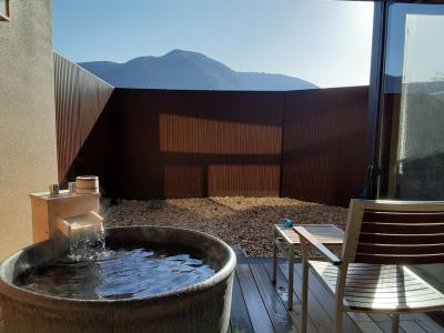 ワンコと泊まれる旅館。入り口から高級感あります。部屋には犬用のドッグランや設備が完備。人間にとっても、客室内に源泉かけ流しの温泉露天風呂もあり、ベッドルームとリビングルームが分かれる広さで快適。料理も素晴らしく、ワンコとともに大満足の滞在となりました。スタッフも皆さんフレンドリーでサービスも良かったです。