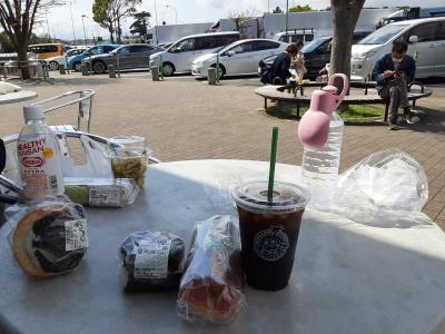 スリーエフがパーキングエリアに展開するGoozというコンビニがあります。ほかに店舗はありません。Goozでは、店舗で作る総菜やおにぎりなどが充実。ランチを楽しく選ぶことができました。店舗外にはテラス席がありました。
