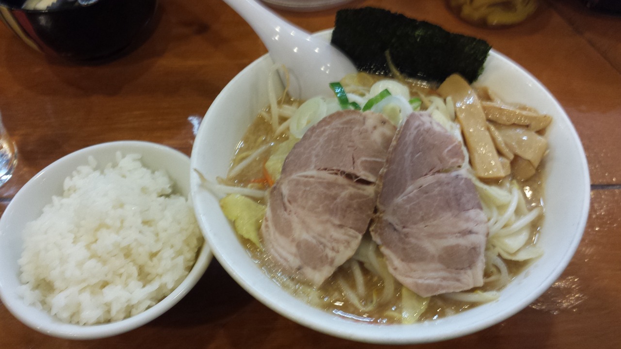 ランチで訪問。野菜ラーメン(880円)を注文しました。ランチタイムはライスが無料で付くようです。荻窪は、二葉や春木屋といった有名ラーメン店があるラーメン激戦区といわれていますが、しょうゆ系のあっさりラーメン店が多いです。家系もできましたが、レベルは低く、実は美味しいコッテリ系のラーメン屋が貴重です。野方ホープも好き嫌い分かれそうですが、貴重なコッテリ系のラーメン店です。