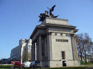 ロンドン版の凱旋門です。ハイドパーク・コーナーにあり、ナポレオンとの戦争、最終的には1815年のウォータールーの戦いで、イギリスを勝利に導いたウェリントン卿を讃えるために建てられたのこと。公園を散策中に立ち寄りました。