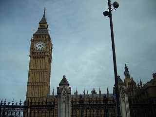 隣接のウエストミンスター寺院を含めた、このエリアはロンドン観光のハイライト。観光客で賑わうエリアです。国会議事堂とはいえ、元々は宮殿だったこともあり外観は華やか。北側にそびえる時計塔、ビッグ・ベンが有名です。