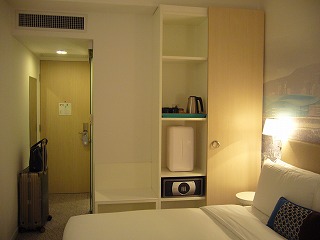 ワンチャイにある新し目のホテル。部屋は狭いですが、今風のスタイリッシュな内装で、清潔感があります。部屋はシングルだと、20?をはるかに切るくらいの広さしかありません。必然的にクローゼットとかも狭いので、泊数が多かったり、複数人で宿泊する場合は窮屈になると思います。バスルームはシャワーブースのみでした。