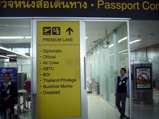 日本航空のビジネスクラスでバンコクに行きました。空港到着前に、同クラス利用者には優先レーンで入国審査を受けるためのカードが配られました。優先レーンエリアにはカードを渡さないと入れず、待ち時間ゼロで入国できました。