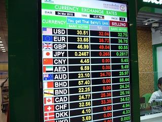 タイバーツへの両替は、スワンナプーム空港でも簡単にできるので、レートが悪い日本では行わない方が良いです。空港では、バゲッジクレームエリアや税関検査後のミーティングポイントなど、あちこちに銀行系の両替所があります。また、BTS駅改札など、市街でもいたるところに両替所があり、レートは空港よりも有利です。