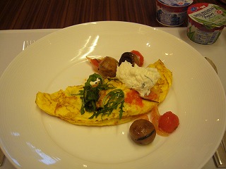 ファーストクラスラウンジ。出国審査を過ぎて左手すぐです。何よりも魅力なのがレストラン。ビュッフェの品揃えとクォリティーも高いうえ、ペニンシュラホテル提供のアラカルトメニューもあります。今回は朝の利用だったので、朝食メニューから、クリームチーズとほうれん草のオムレツを頼みました。美味です。