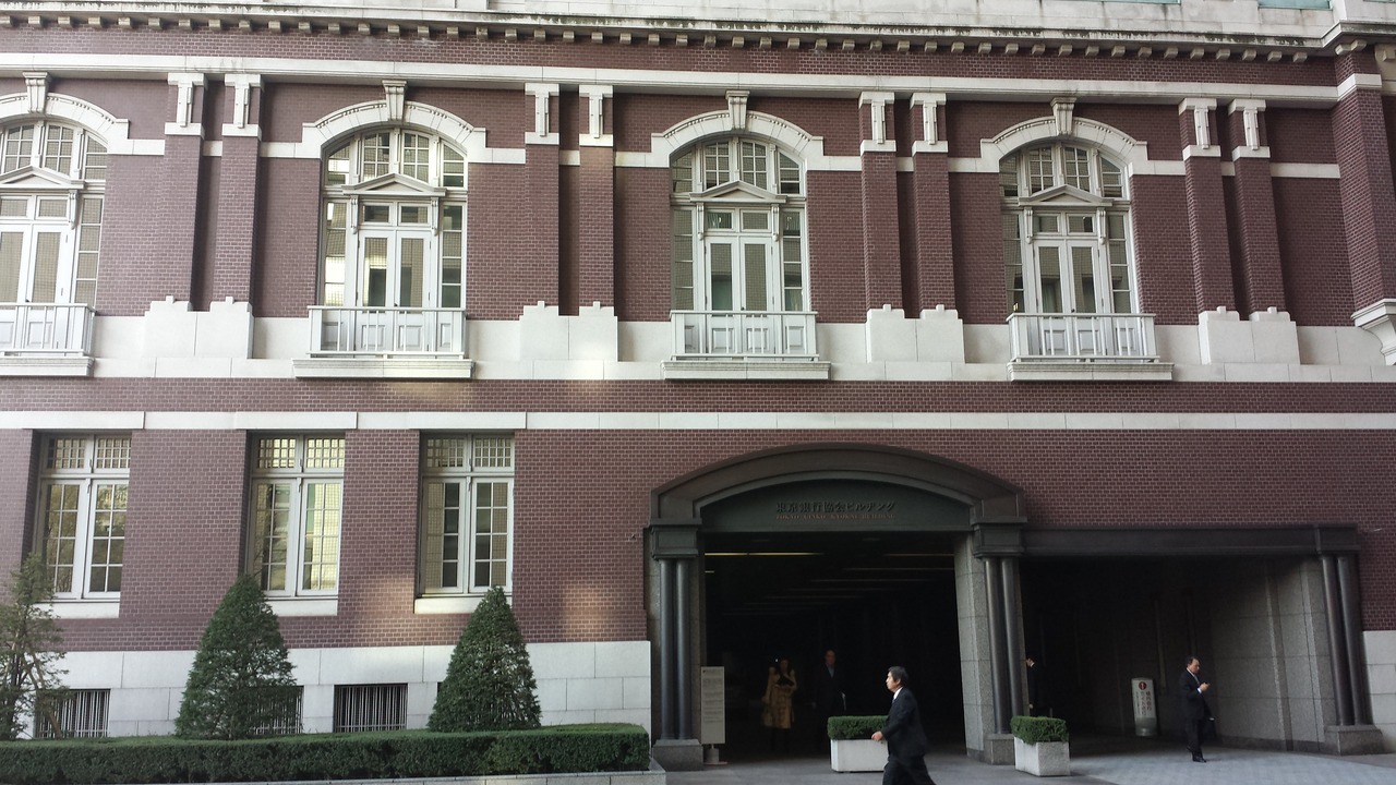 東京駅の丸の内北口から、皇居方面に3分ほど歩いたところにあるオフィスビルです。和田倉橋の道路向かいにあります。下層階は、歴史ある建造物を残し、内部や上層階は近代的な建物になっています。ガードマンがいて、ビル内のどこに行くか訪ねられました。