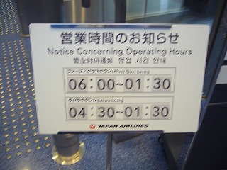 国際線の出国審査を過ぎて左手側、112番ゲートあたり、エスカレーターで4階に昇ったところにあります。入り口はファーストクラスラウンジと共用で、そこで左側(=サクラ)、右手(=ファースト)に分かれます。新しいラウンジできれいですが、混雑しています。