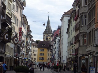 リマト川沿い、中央駅からチューリッヒ湖の間に広がる旧市街にある教会です。大きな時計塔と、茶色い落ち着いた色の屋根が目印です。旧市街を歩いていると、ところどころで石畳越しに教会が見えるエリアがあり、とても趣深い風景を楽しめました。