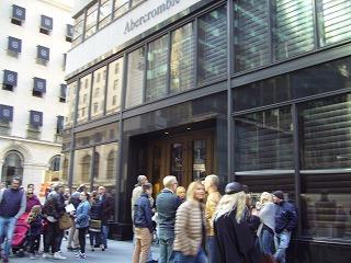 アバクロの旗艦店。アメリカでは流行に陰りがあり、アバクロのロゴを前面に押し出したデザインを止めていますが、観光客中心の5thアヴェニュー店の人気は未だ健在です。オープン前から開店待ちの人がたくさんいました。