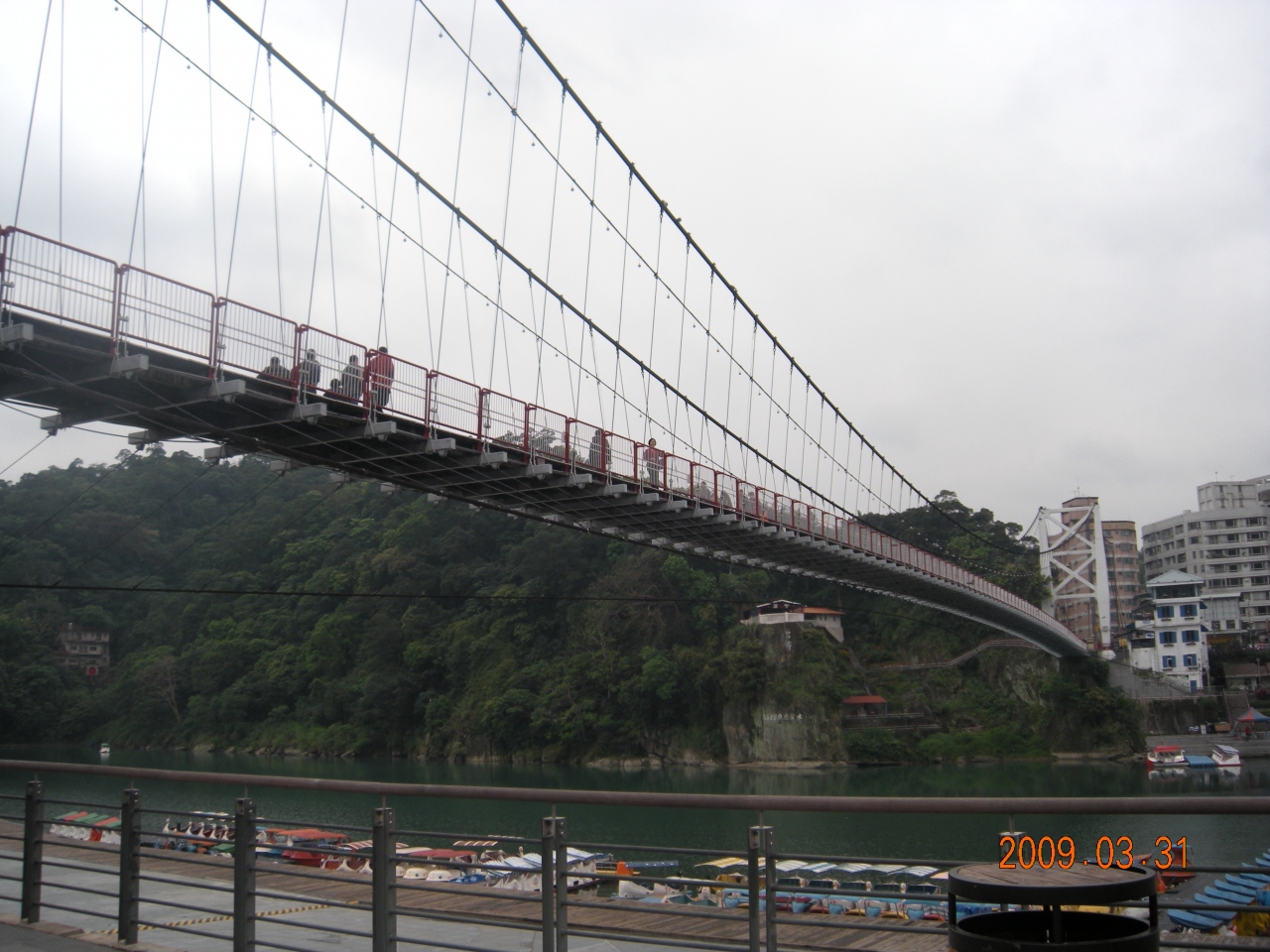 歩行者専用の吊り橋や川沿いにきれいに整備された歩道、花壇、カフェなどがあります。
